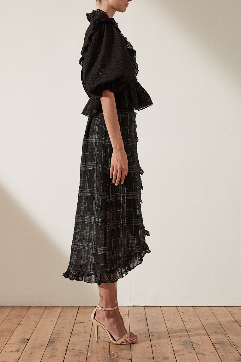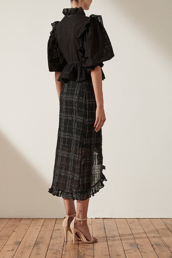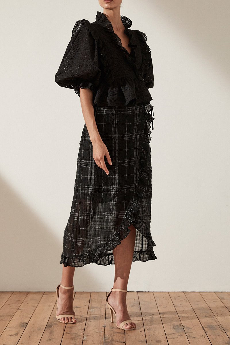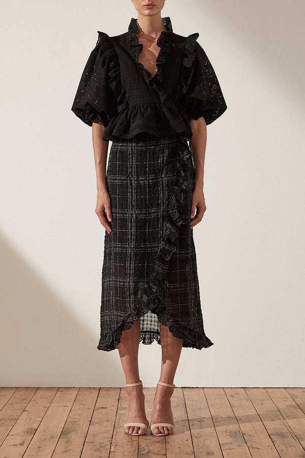ACKLEY COTTON LACE PUFF SLEEVE WRAP BLOUSE - BLACK