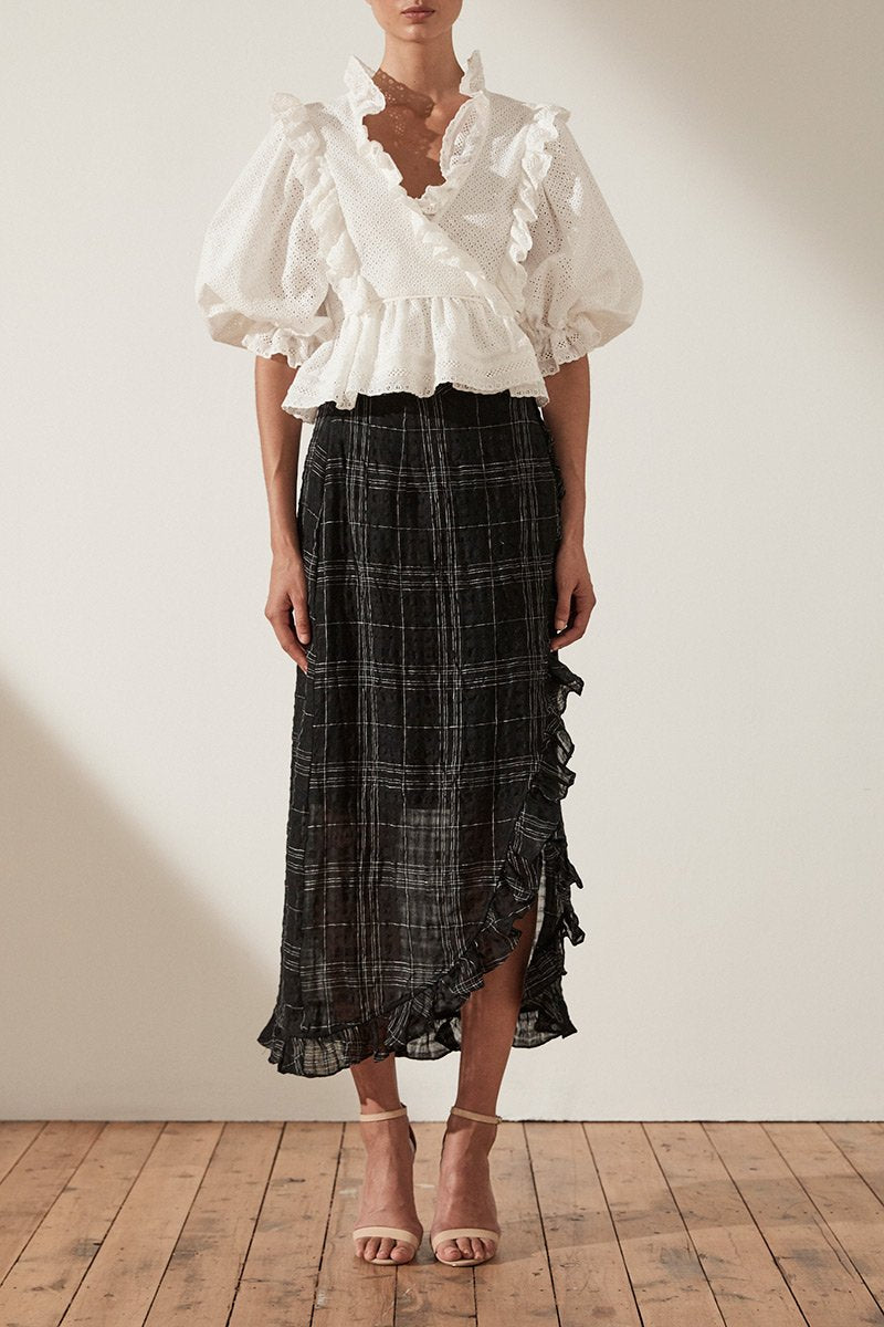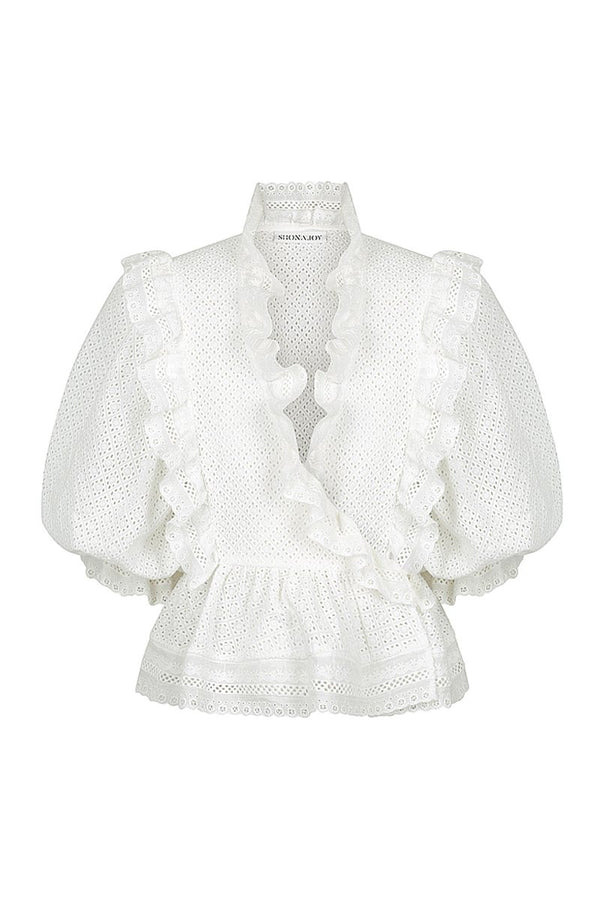 ACKLEY COTTON LACE PUFF SLEEVE WRAP BLOUSE - WHITE