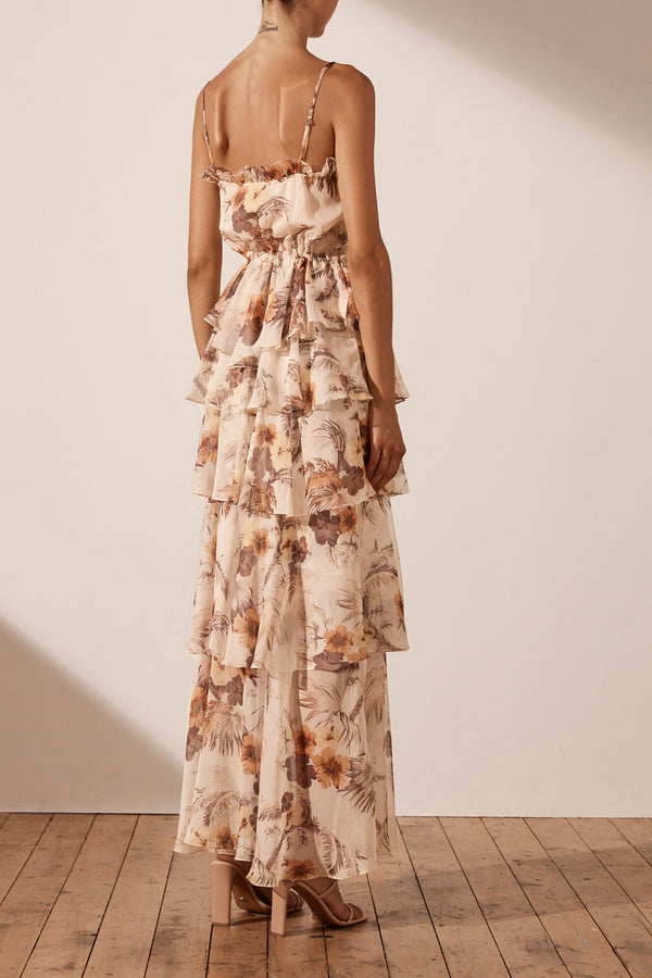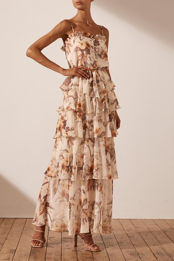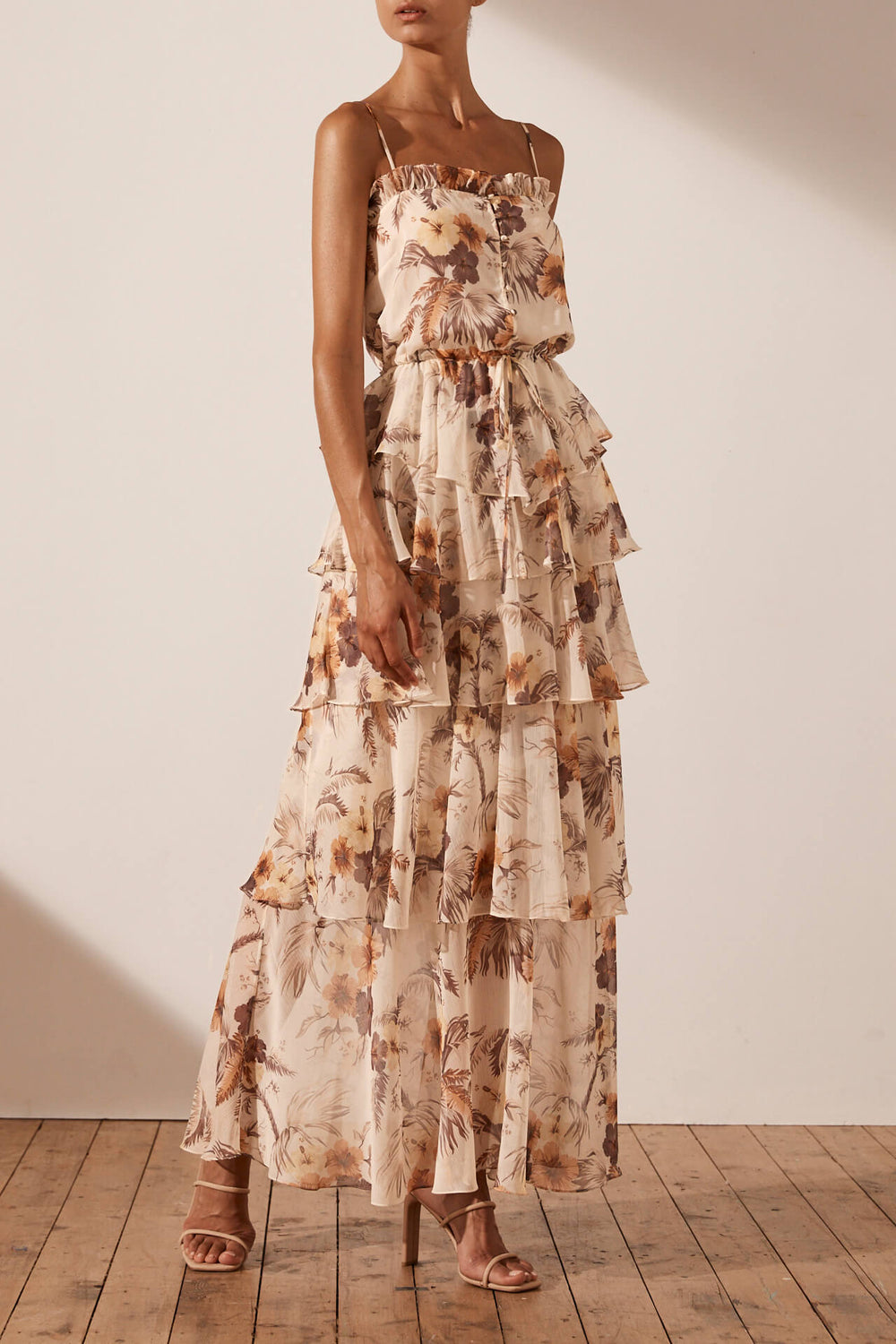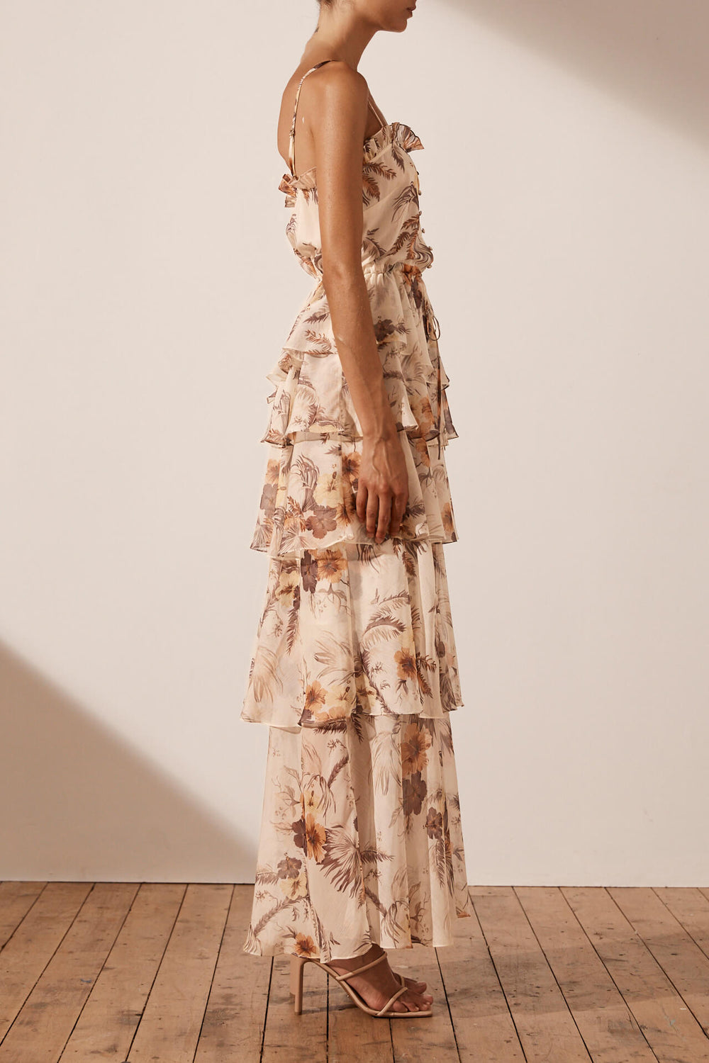 Cami drawstring maxi dress in the exclusive Marquis print.